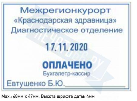 Поле: 68 х 47 мм, высота даты: 4 мм. Соответствует новыми требованиями ЦБ РФ.