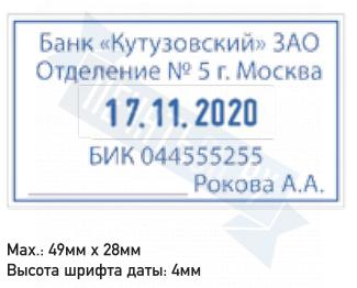 Поле: 49 х 28 мм, высота даты: 4 мм.