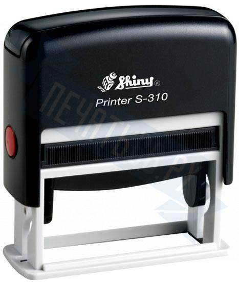 Автоматическая оснастка Shiny S-310. Размер поля: 54 х 13 мм. Штемпельная подушка: синяя.