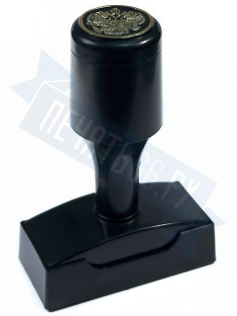 Ручная пластмассовая оснастка с крышкой для печати, штампа, факсимиле имеет клеевой слой для крепления клише печати.