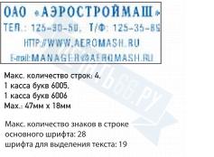 | Размер поля: 47 х 18 мм, строк 4, кол-во знаков 28/19 |